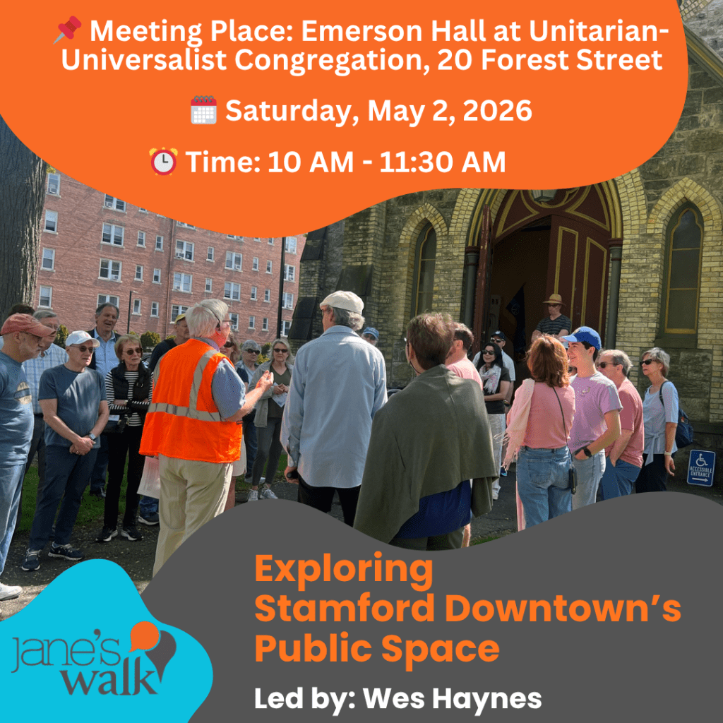 The Emerson Hall Foundation, Stamford Downtown Special Services District, and Stamford Historic Neighborhood Services have partnered to present Jane’s Walk Stamford on Saturday, May 2, 2026, at 10:00 AM—a free, community-led walking experience celebrating the stories, spaces, and shared history of Stamford Downtown.